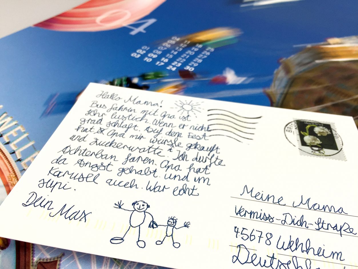 So schreibt etwa ein Kind über den Ausflug mit Opa, Freunde berichten dem kranken Kumpanen in der Heimat von der Skiausfahrt oder Eltern ermahnen die Kinder, zu Hause brav zu sein. Die in unterschiedlichen Sprachen verfassten Postkarten zeigen dabei stets einen Setra Omnibus im jeweiligen Land.