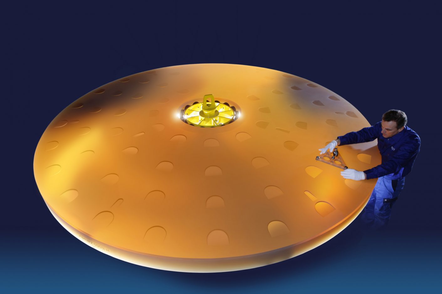 „Um die 69 Aktuatoren – Maschinen ähnlich eines „mechanischen“ Muskels – der aktiven Optik aufzunehmen, wurden auf der Rückseite des Spiegelträgers Taschen mit äußerst geringen Toleranzen eingearbeitet“, erklärt Dr. Thorsten Döhring, Experte für Astronomieprojekte bei SCHOTT Advanced Optics in Mainz (Deutschland). „An diesen Punkten kann der Spiegel nun im Nanometer-Bereich justiert werden. Damit lassen sich die Schwerkraftverbiegungen des Spiegels beim Nachführen des Teleskopes kompensieren.“